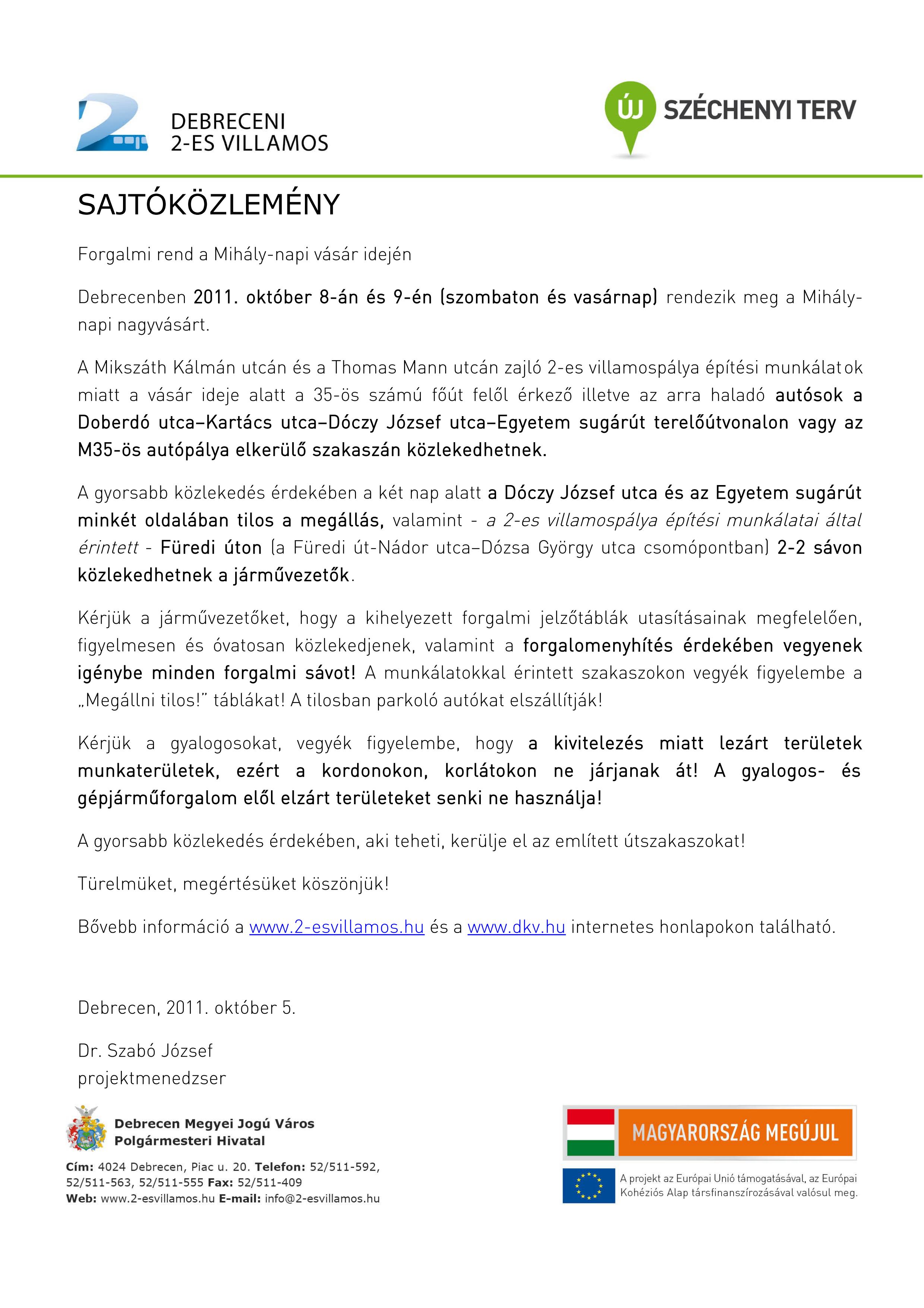 Kérjük a járművezetőket, hogy a kihelyezett forgalmi jelzőtáblák utasításainak megfelelően, figyelmesen és óvatosan közlekedjenek, valamint a forgalomenyhítés érdekében vegyenek igénybe minden forgalmi sávot! A munkálatokkal érintett szakaszokon vegyék figyelembe a „Megállni tilos!” táblákat! A tilosban parkoló autókat elszállítják!