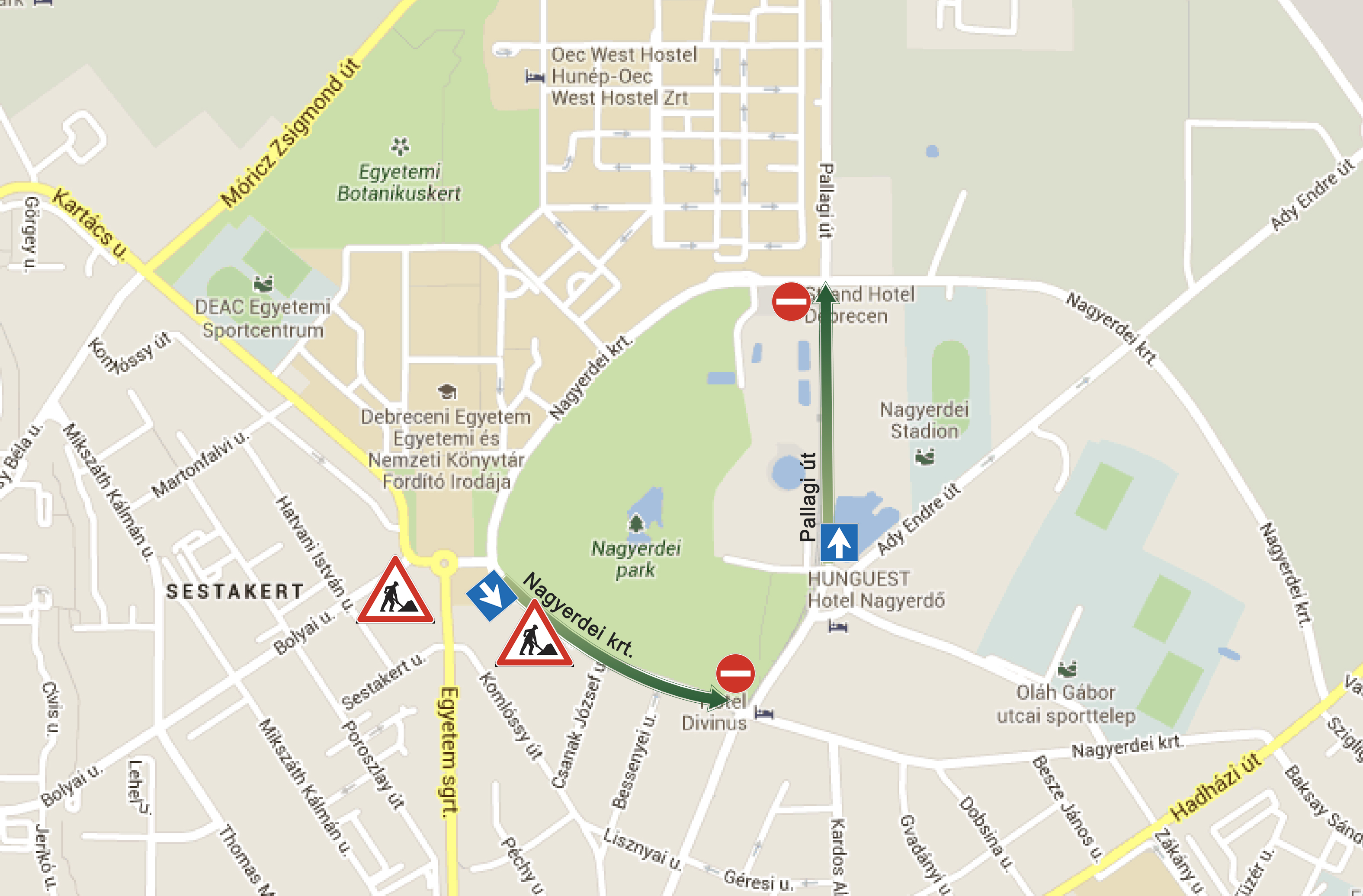 - A Pallagi út (Ady Endre sugárút és Nagyerdei krt. közötti szakasza) a Nagyerdei krt. felé egyirányú.